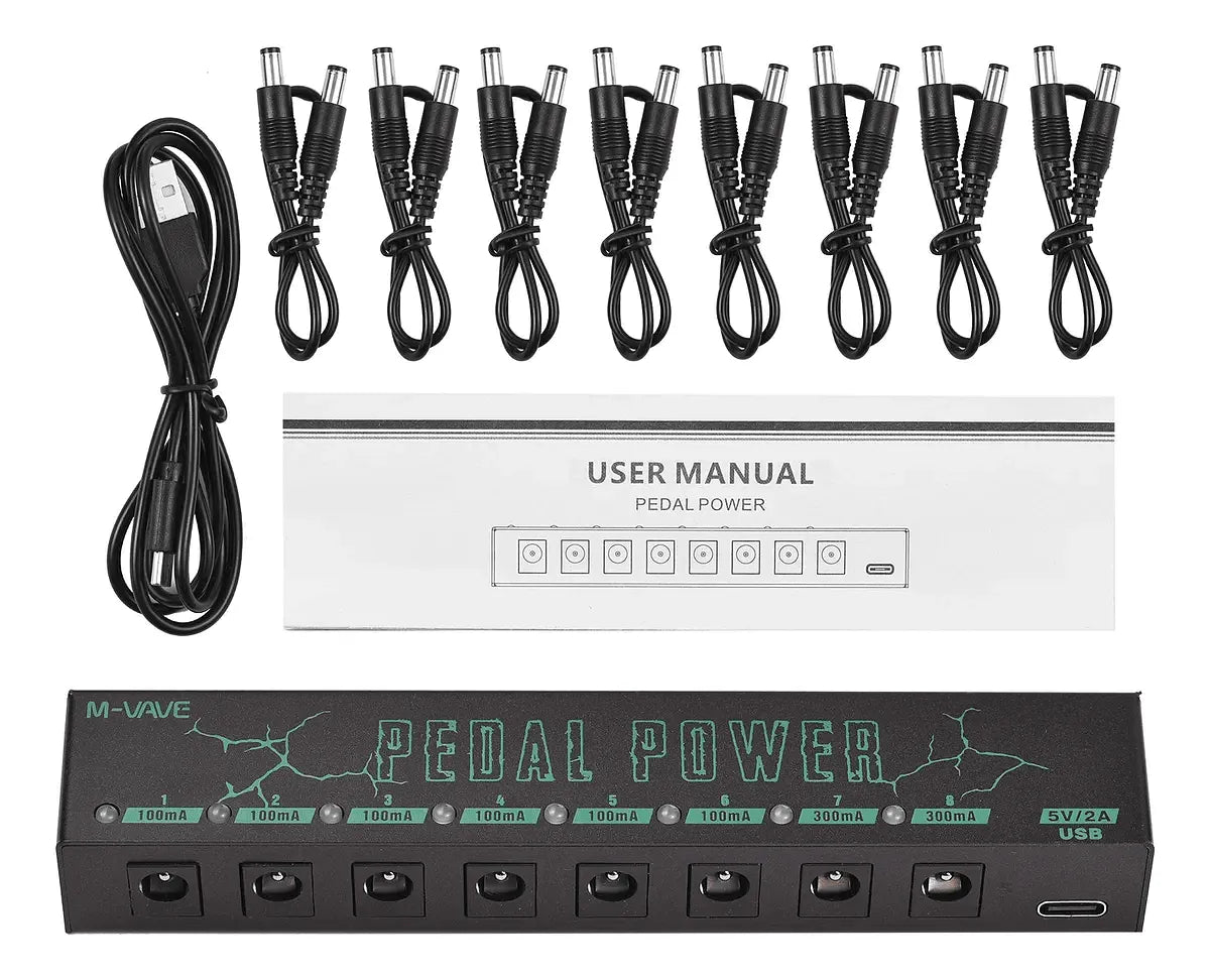 - Múltiplas Saídas: Ideal para alimentar até 8 pedais simultaneamente, com saídas de diferentes correntes (por exemplo, 100mA, 200mA, 500mA) para atender às necessidades de diversos pedais.